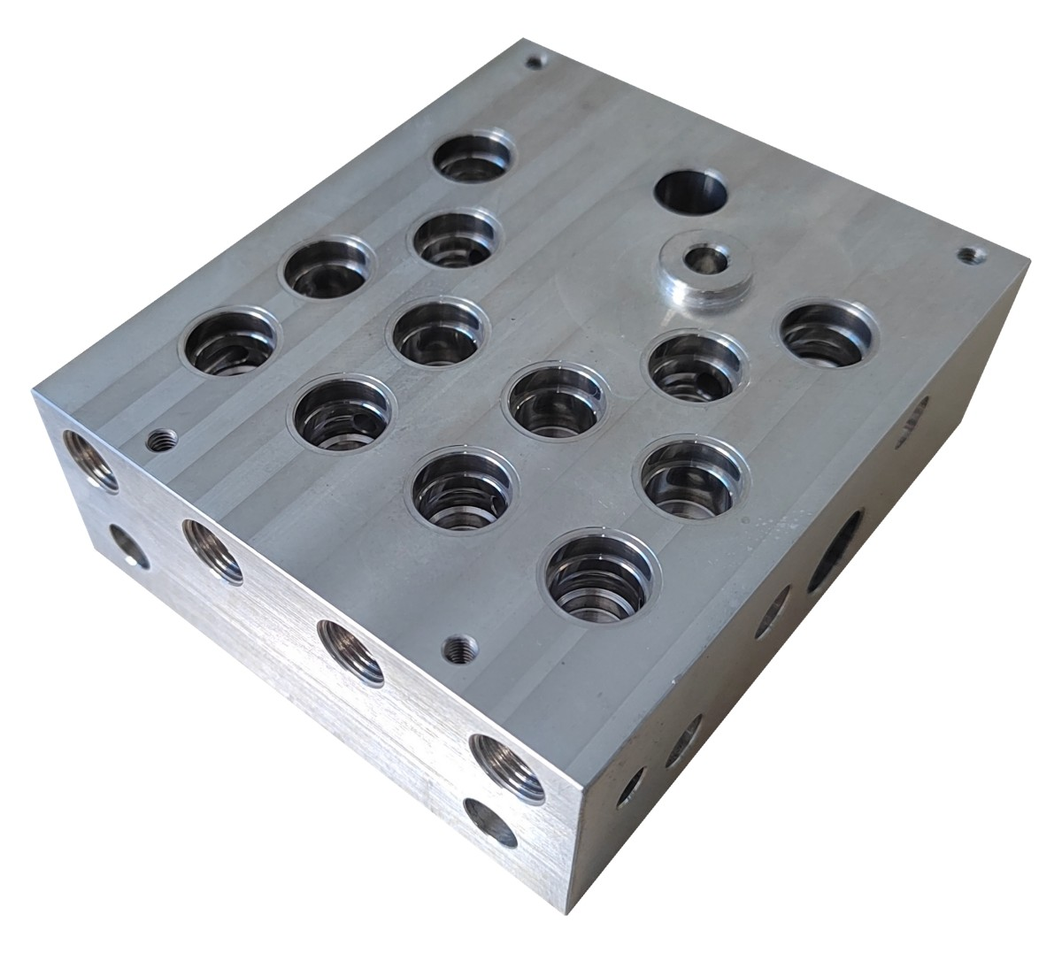 11.针对阀体1工件的有带有台阶的深孔,存留的清洗液无法被气泵切水吹出,所以对于工件的的两个深孔,定点定位的高压吹干。