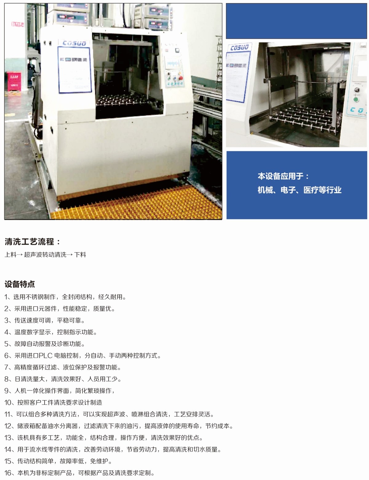 该机型一般根据清洗或去毛刺工业需求,以实验测试结果为参考,按照客户实际需要来制定设备的规格参数。
